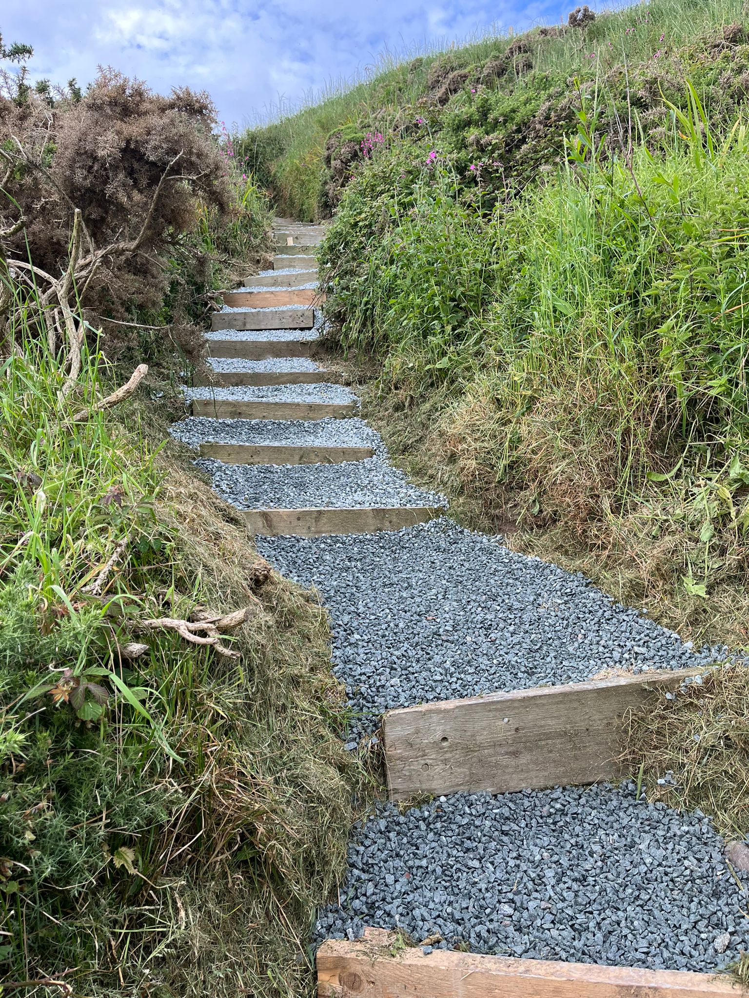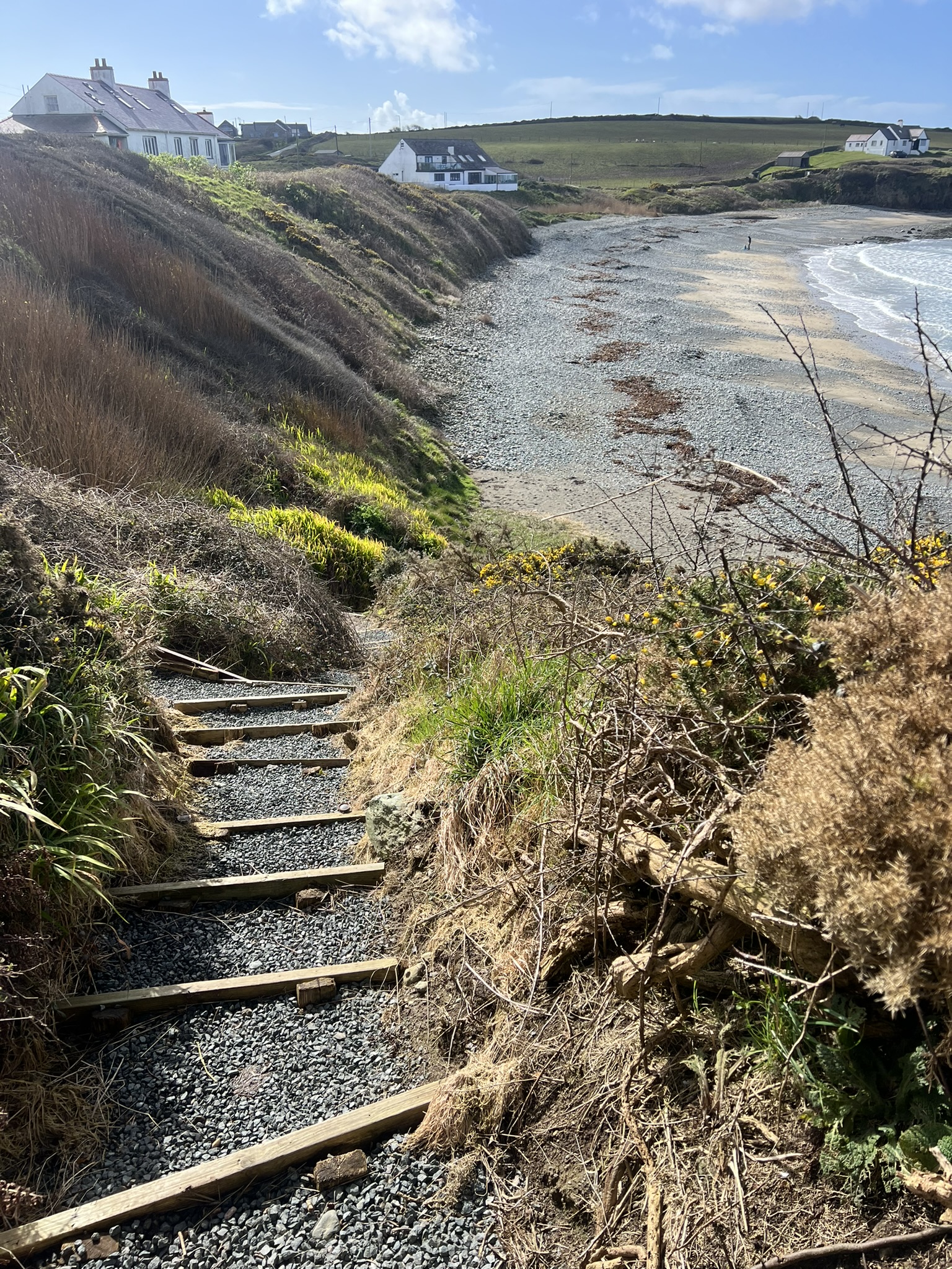 The steps down to the beach are manmade and exposed, therefore vulnerable to the weather. We try our utmost to maintain them throughout the year but care must be taken and there is no handrail.