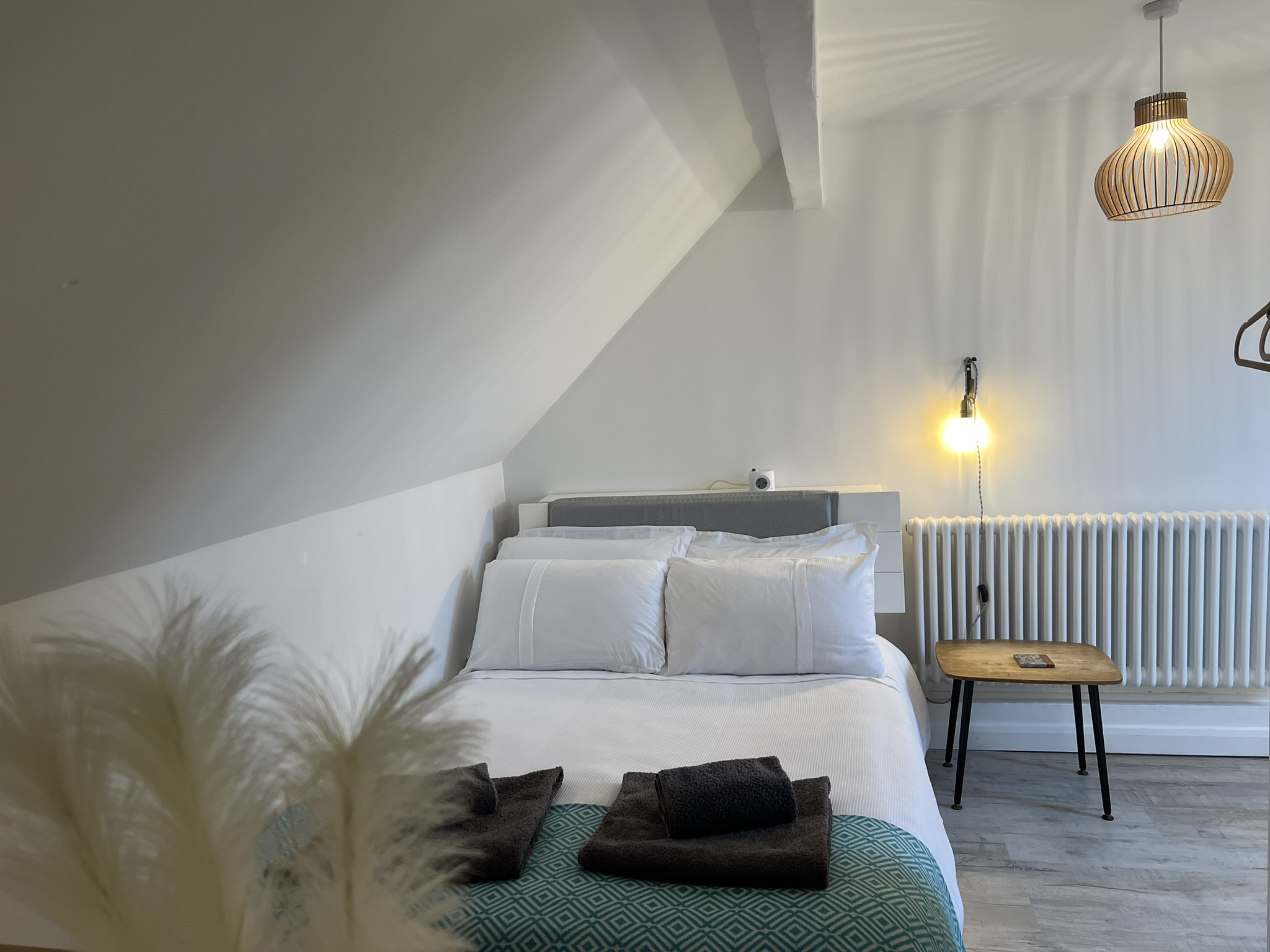 Up the narrow stairs and into the eaves of The Annexe, we have a cosy mezzanine which is home to a double bed, dressing table and also benefits from its own shower room, with amazing views out to sea.